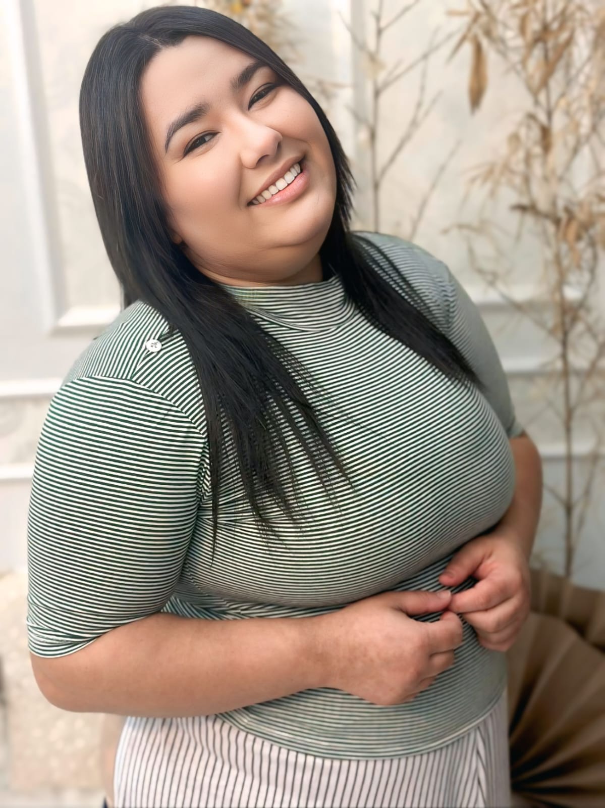 Blusa com listras verdes em malha 100% algodão, garantindo leveza , maciez e respirabilidade perfeito para o dia a dia .